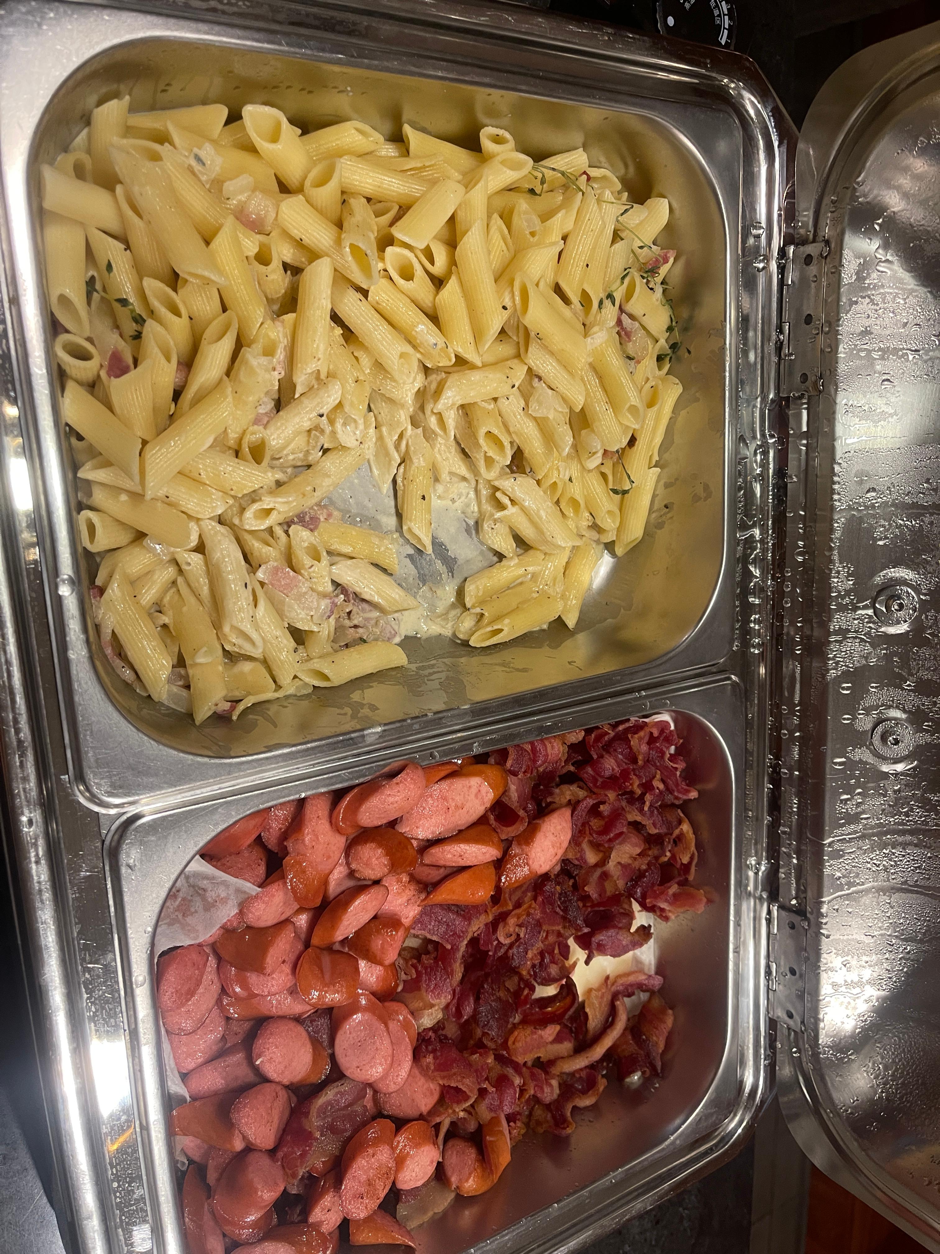 소세지와 딱딱한 베이컨은 항상 나왔고요