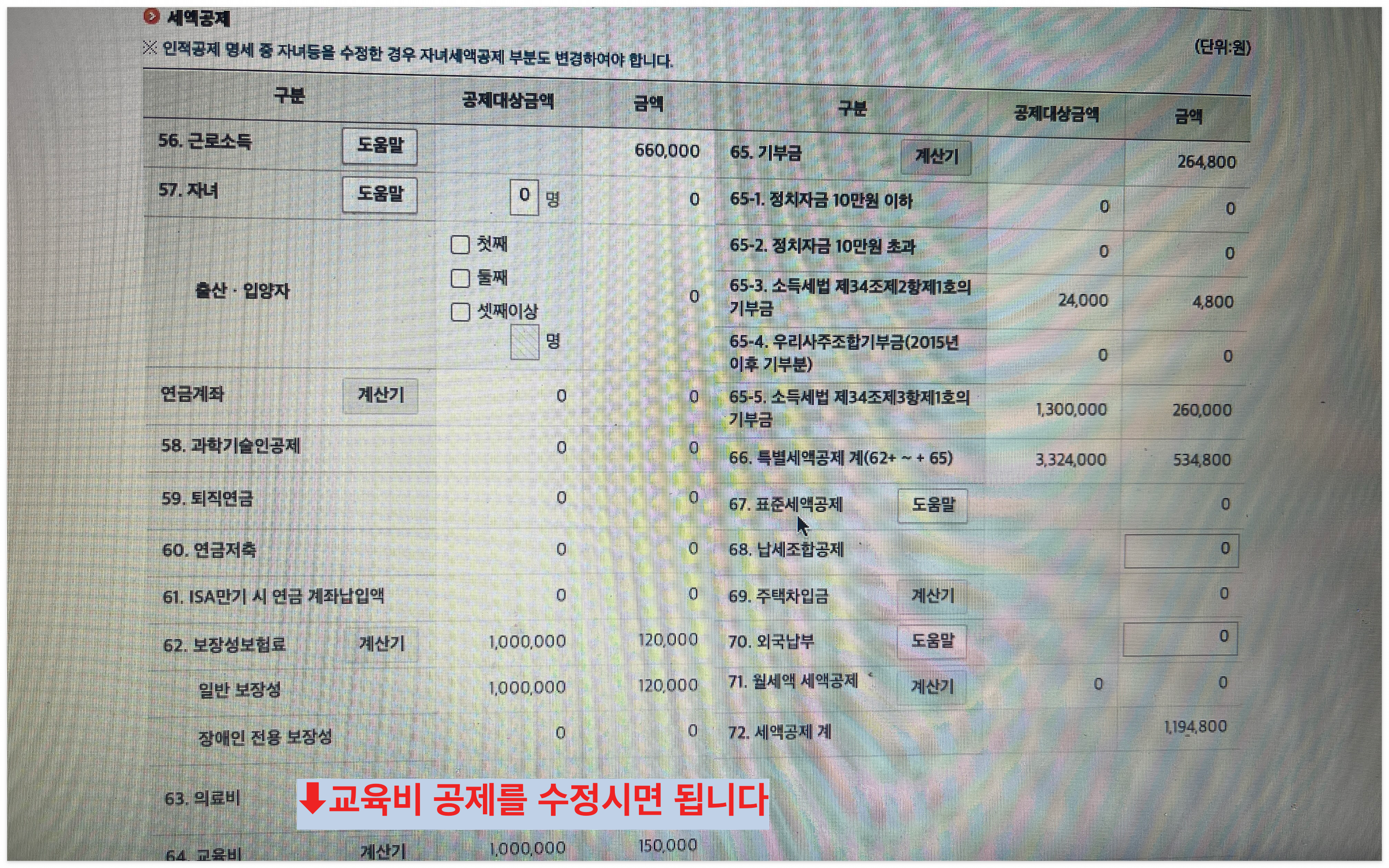 소득공제와 세액공제가 교육비는 세액공제에 해당이 되니까 주의해 주세요