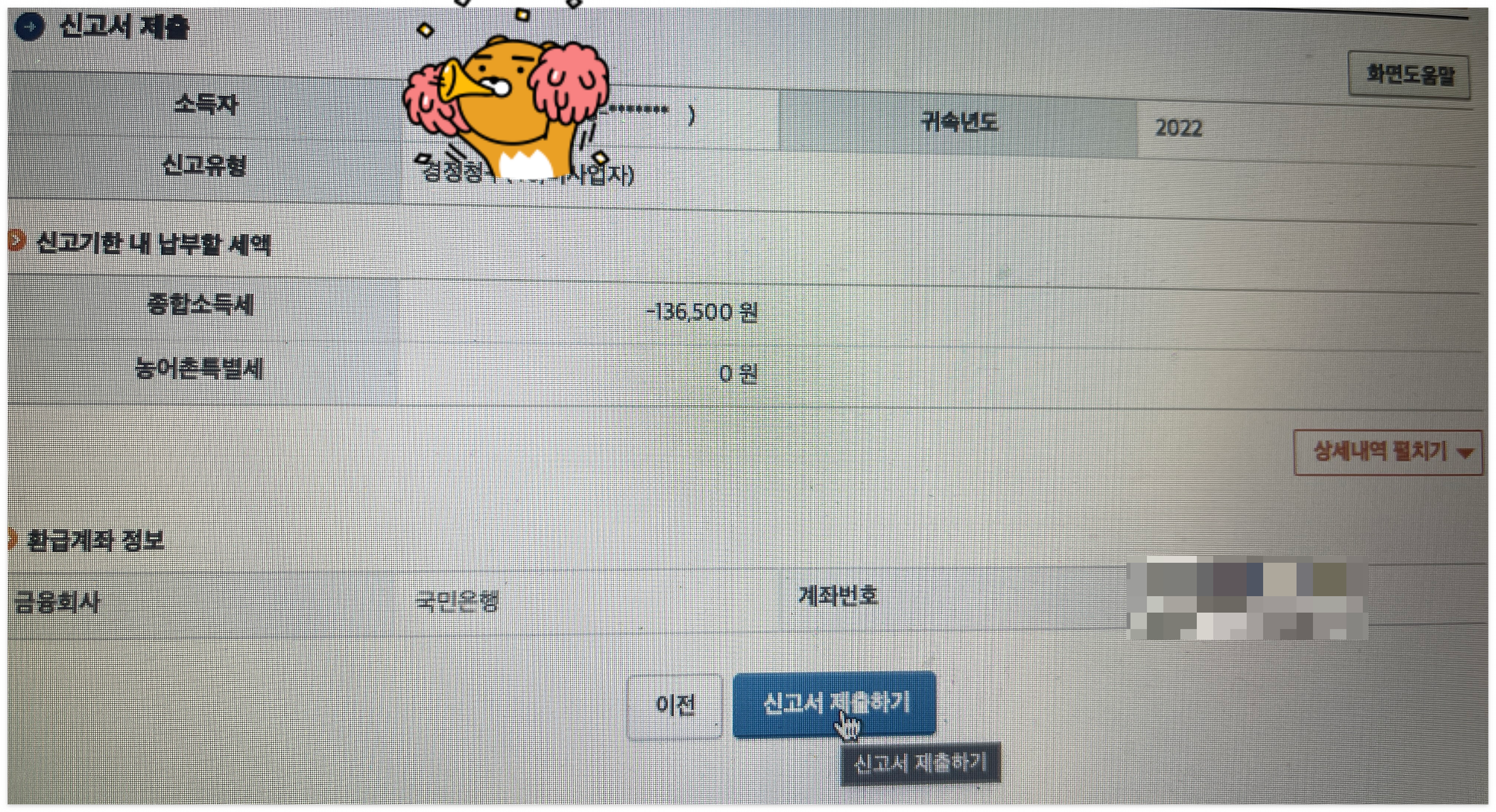 신고서를 제출하기를 완료를 해줍시다