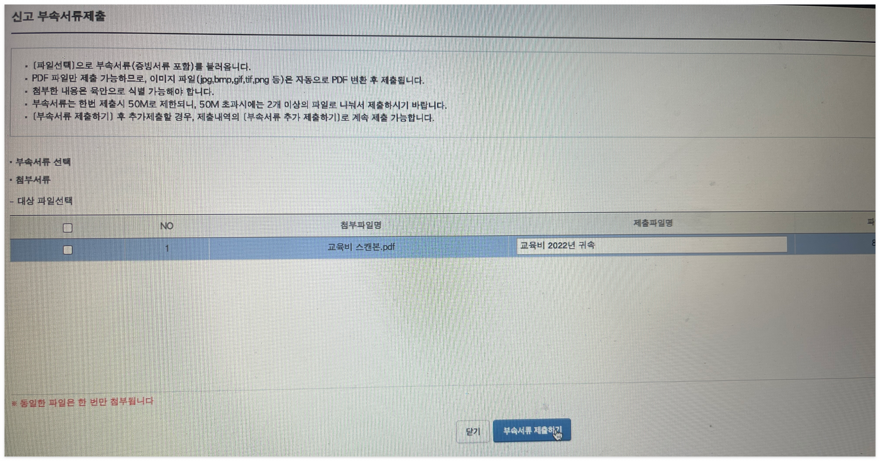 경정청구 목록에 들어가시면 제출서류 첨부하기 화면이 나와요